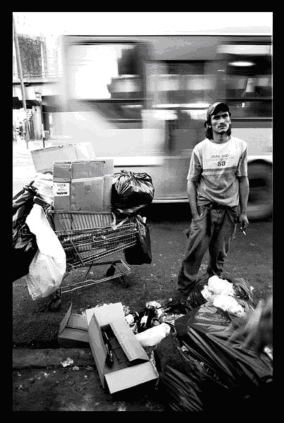“Me llamo Alegría”, -parece una broma pesada –pienso- mientras un hombre enfundado en harapos y con pelo largo me estrecha su mano frente a una pequeña empresa de clasificación de reciclaje en el emblemático barrio de La Boca en Buenos Aires. Es una de las 35.000 personas censadas –fuentes extraoficiales hablan de más del doble- que recogen cartón y materiales reciclables en la ciudad, los llamados cartoneros. Alegría descarga barcos durante el día y por las noches se convierte en parte del ejército de cartoneros que viaja en los llamados trenes blancos hacia el centro de la capital con el fin de ganar algo con la basura de los demás. Quiere enviar a su hijo a la universidad para sacarle de la miseria.